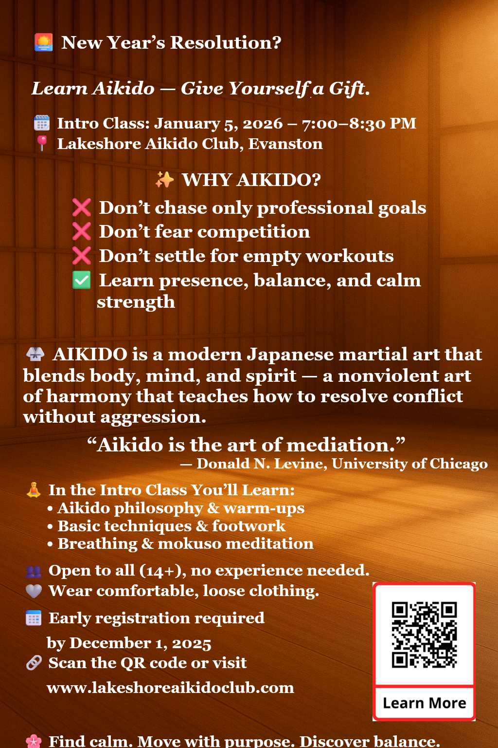 His newly established Lakeshore Aikido Club brings new energy into Evanston and the greater Chicago area by offering an effective system of self-defense, a dynamic and innovative form of exercise, and a vigorous path to psychological and spiritual wellbeing. The style and pedagogy of Aikido that Antonio promotes follows the lineage represented by Seigo Yamaguchi and Christian Tissier, two of the best Aikido experts in the world.